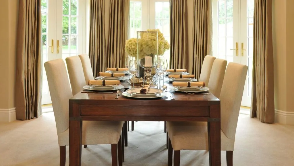 They can become more than just regular chairs by elevating the elegance of the room if done right. Infuse your personality by mixing textures in tandem. For example, balance out a wood dining table with fabric-covered dining chairs to complete the room. Don’t forget to mix and match with light fixtures and decor accents until everything is right.