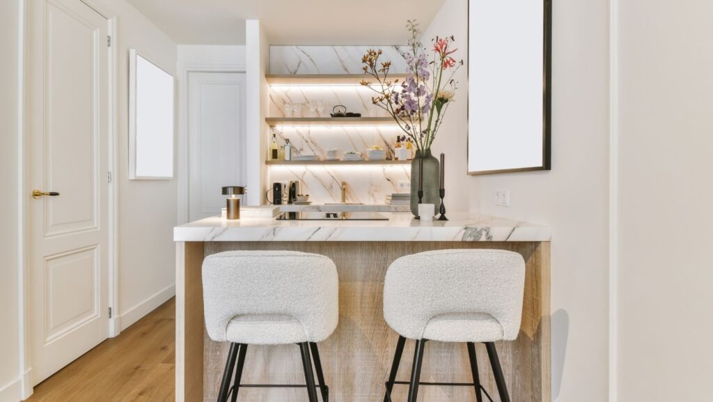 Chairs with arms or heavy, bulky frames can overwhelm a small area. Instead, choose slim, armless chairs that are easy to tuck away when not needed. Benches are also a great option — they can be pushed under the table completely to free up walking room. If you have an unused wall, think about installing a built-in bench or banquette with storage underneath. Not only does this add seating, but it also helps with clutter.