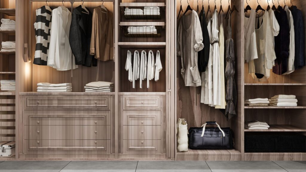 Using eco-friendly materials like bamboo, reclaimed wood, recycled metals, and low-VOC finishes doesn’t just beautify your closet; it also makes you feel responsible. Likewise, a closet designed with attention to mixed-texture materials and neutral palettes with pop finishes makes daily use more pleasant and adds value to your interiors.
